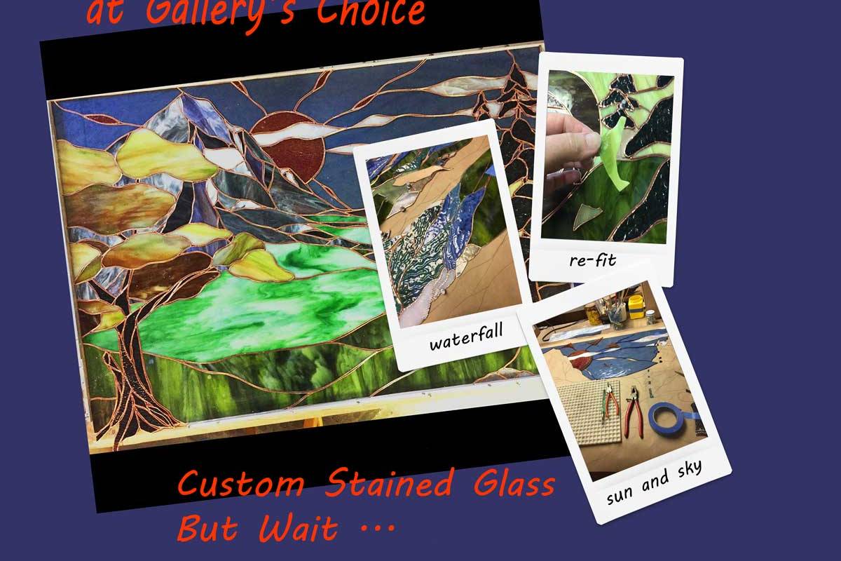 Delivering authentic hand-crafted stained glass has never been more fun! Gallery's Choice delivers custom rustic stained glass cabinet inserts with 24 gauge copper overlay treatments for a customer's cabin in the North Woods!