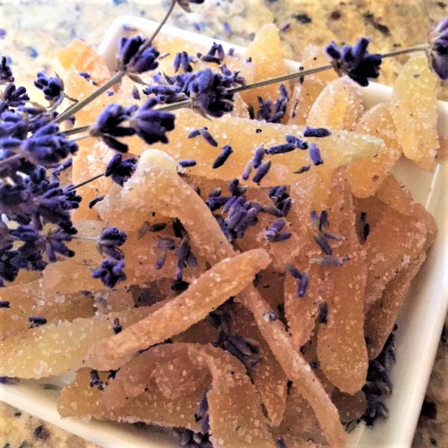 • 2 T. GC Lavender Candied Ginger, finely chopped (or 2 t. freshly grated ginger or 1/2 t. dried ground ginger)