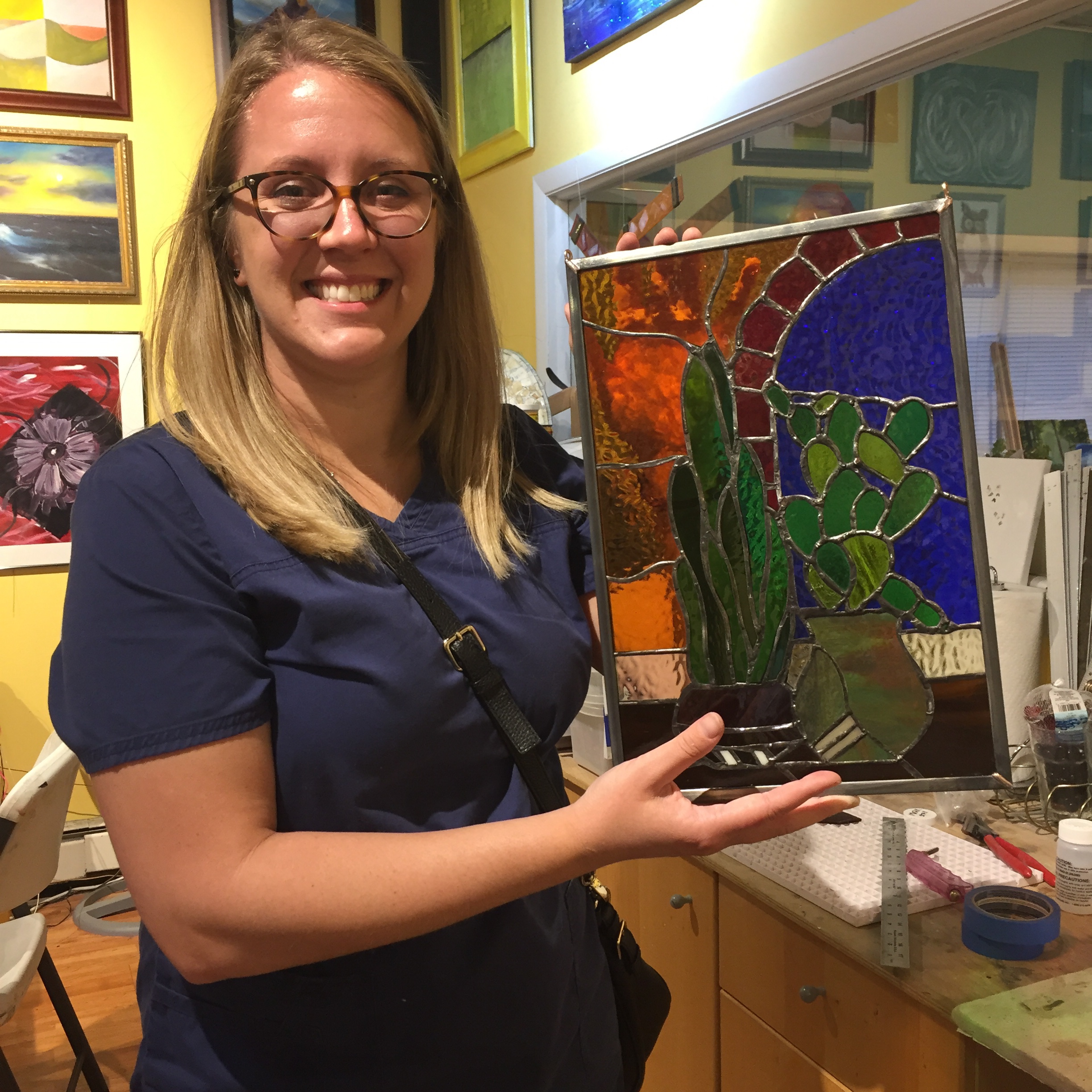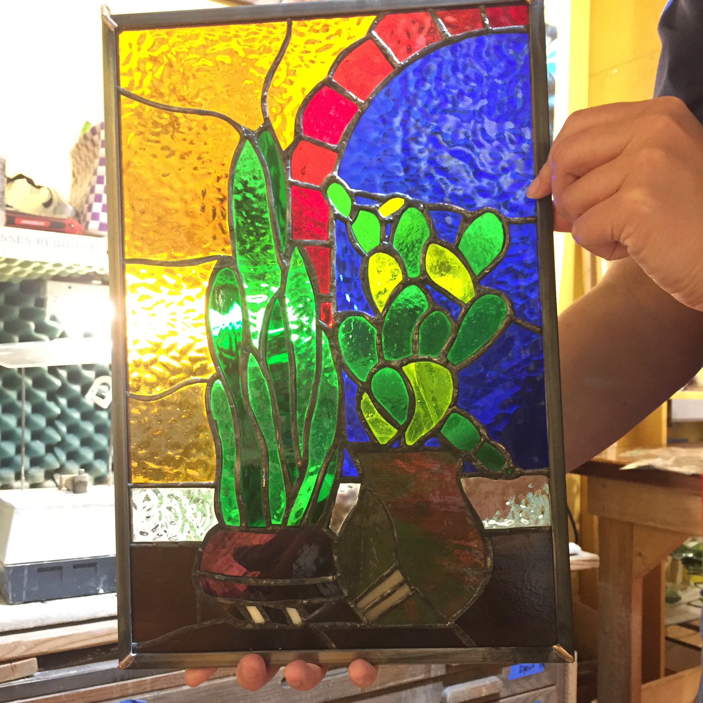 If only captured in glass! This stained glass student captured the beauty of the arid west, with her cacti window.